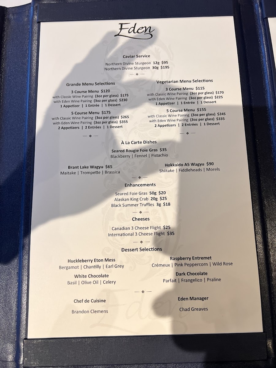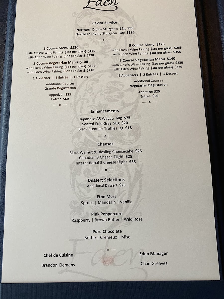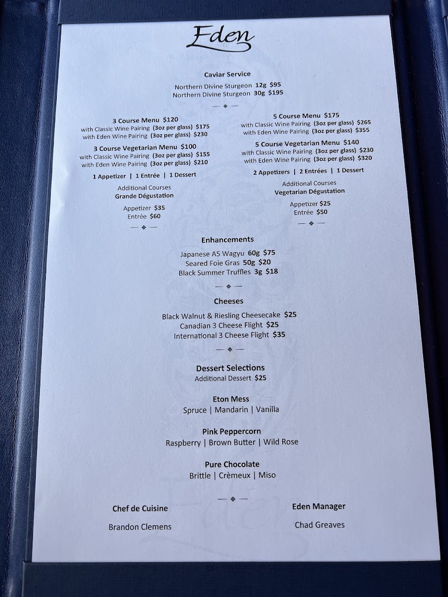 The main selections elevate the feast with standouts like the Hokkaido Scallop and Brant Lake Wagyu Striploin, showcasing a commitment to fresh, high-quality ingredients. Indulge in the thoughtfully curated 3 and 5 Course Menus, where each dish tells a story, and the harmonious flavors linger long after the final bite. Our guests rave about service that goes above and beyond, ensuring every visit feels like a special occasion. Don't miss the chance to savor the artistry at Eden—an experience you won't soon forget.